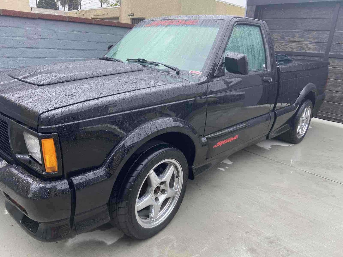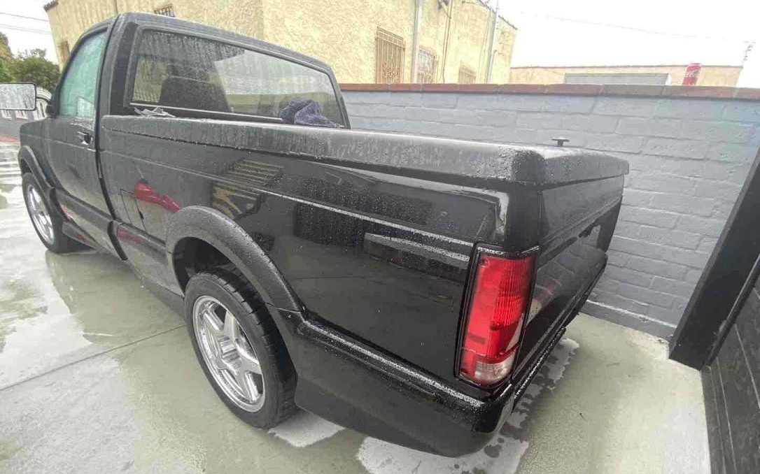 The interior looks good, showing the stock buckets that were trimmed with a unique upholstery scheme for the Syclone and its Jimmy-bodied sibling, the Typhoon. The solitary photo of the cabin reveals no unsightly tears in the fabric or attempts to apply one’s own vision for custom colors. The Syclones were all automatics from the factory, and could apparently withstand a fair amount of engine tuning given how many modified examples of this boosted truck are running around at any given point in time. There’s no mention of any engine modifications on this example, but given the visual tweaks we see here, it’s a question worth asking.