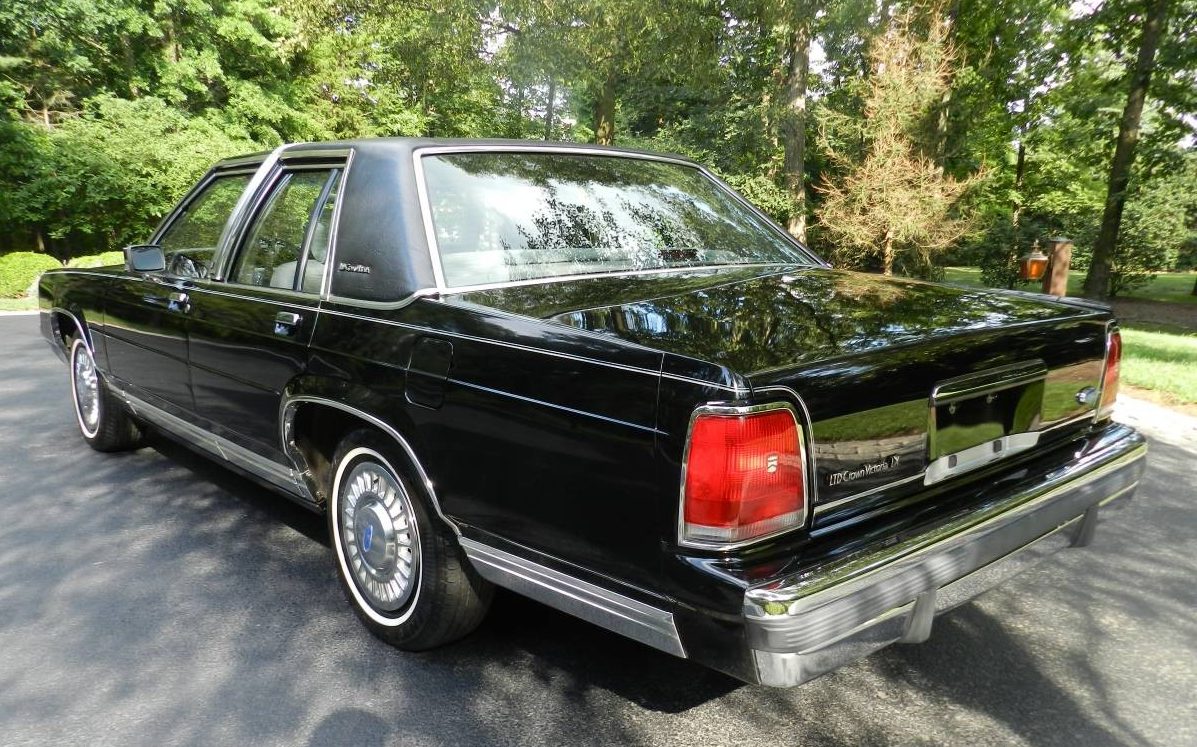 The seller states that this C.V. is essentially a one-owner car as he bought it in January of 2020, from the original owner, and then drove it for 2K miles. Sounds more like a two-owner car. He further adds that this Ford has been garaged its entire life but now that he’s lost his garage space he has to let it go. I’m not sure how you “lose” your garage space from digs like the one in the background, but whatever the case, the car has to go. And yes, it appears as if it has been stored properly over the years as it shows beautifully. Reading through the seller’s comments regarding the exterior, and then perusing the accompanying images, it is obvious that this LTD needs no attention. The seller states that this Ford was never driven in winter or on salted roads. The only thing that subjectively detracts from the exterior is the silly landau top or what Ford referred to as “Brougham Roof Treatment” but it was part of the LX package and maybe this C.V. would look too much like a cop car without it – it’s a matter of preference. That said it appears to be in fine shape as the seller states, “Black half vinyl padded roof looks showroom condition”.