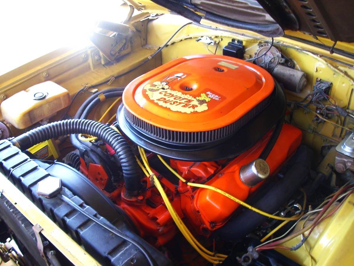 The Banana Yellow paint has been redone and a Superbird-type wing added in the process. The seller says its specs are a little different from the ‘Bird’s and it’s securely attached and “looks better.” So, if he/she intended to create a Superbird tribute, I guess this one classifies. But that car was only built in 1970 with 1,935 copies using either a 440 V8 or a Hemi. The car has never had any rust, so the sheet metal is what the car left the factory with 54 years ago.
