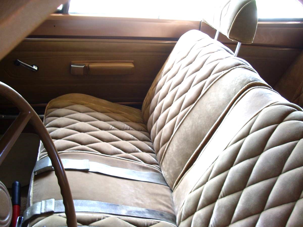 I dig it, even the interior but that wing and the department store mirrors got to go. Imagine the fireworks from the static electricity when you slide across that upholstery.