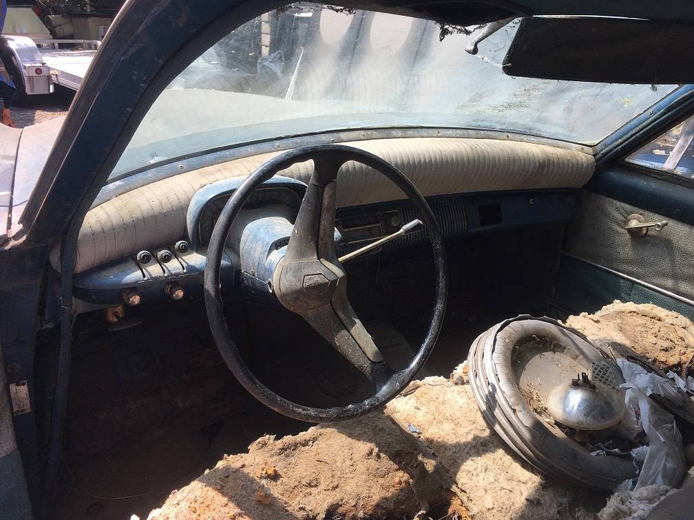 Because of low production numbers, the ’55 Manhattans are the hardest to find. This one looks to have left the factory painted white over green. The sheet metal looks sound in the photos with surface rust, and some might corrosion that would need patching. The undercarriage would be of greater concern as the car has sat close to the dirt for years. The floorboards look crusty in some places and possibly worse under the front seats near the rocker panels. Much of the upholstery has begun to turn to dust. With or without the supercharger, there is no indication of what it would take to get the car running again. With the power maker, Hagerty estimates a 1955 Manhattan to be worth $30,000 or so in top condition. Would you buy into this car at the asking price?