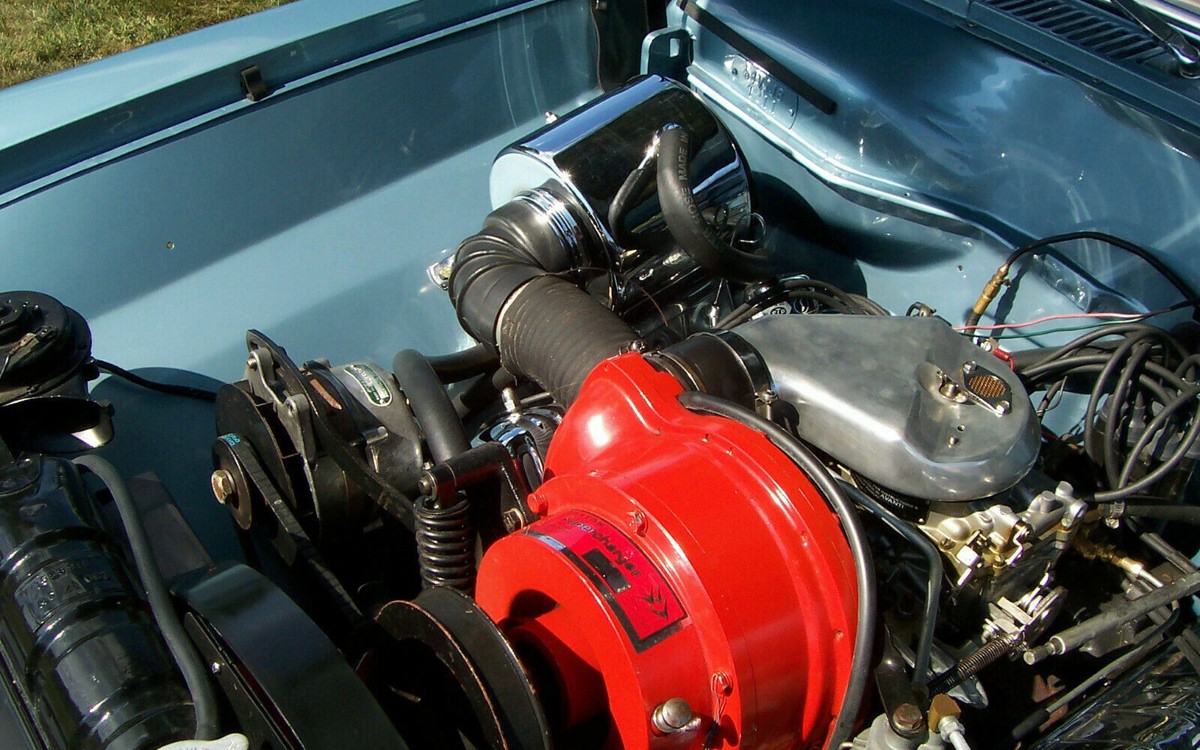 This engine is Studebaker’s 289 cubic-inch V8 which by itself sounds like just about the perfect engine for this size of a car, but a Paxton SN-60 supercharger bumped up the horsepower to 289 hp for the R2 from a very respectable 240 hp in the R1 non-supercharged engine The supercharged R3 had 335 hp and the non-supercharged but dual-four-barrel-carburetor-equipped R4 had 280 hp. The R2 would have been around a $680 option in 1964, $5,600 in 2019 money – not an insignificant number. What is this car going to sell for, or is it even going to meet the seller’s reserve?