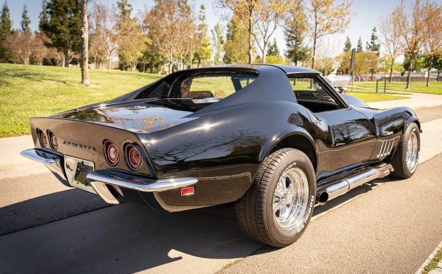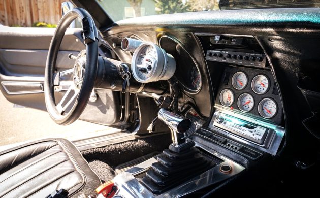 The seller tells us there’s a 1969-dated 427 engine under the hood, with the Weiand 8-71 blower sticking through the hood as proof positive that there’s something truly out of the ordinary going on here. A 600-700 horsepower range is estimated, but there’s no conclusive dyno data, and the owner is unsure of the big block’s internal specs beyond its 10:1 compression ratio. He’s also never taken the Corvette to a race track, but reports that it’s street-friendly, despite the mods that might lead potential buyers to think otherwise. One might also assume there’s a manual transmission, but a built Turbo 350 handles the shifting, with 3.80 gears inside the third member.