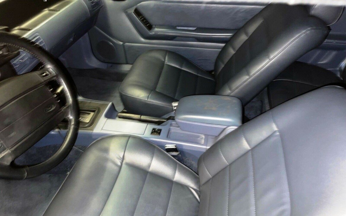 Low-budget vinyl made the perfect office space for coffee drinking, Big Mac-eating police officers. The four-speed automatic transmission frees up one hand for talking on the radio or returning fire. Model year 1990 also saw the first air bag in a Mustang. Nothing here refutes the claimed 43,000 miles.
