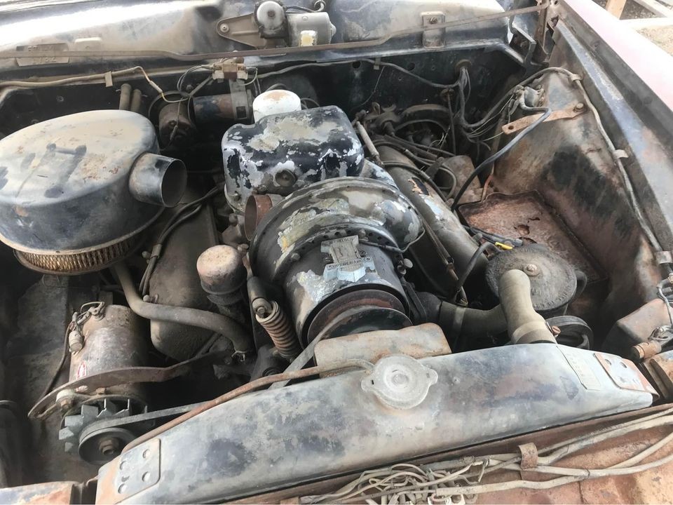 Weeks before we did the deal, and knowing the rusty Clipper would be “wholesaled south”, I spent a few hours pulling the entire supercharger set-up and all related parts, sticking a Studebaker Stromberg 2 barrel carb on the manifold. Also switched the pressurized fuel pump for a good standard 289 fuel pump.
