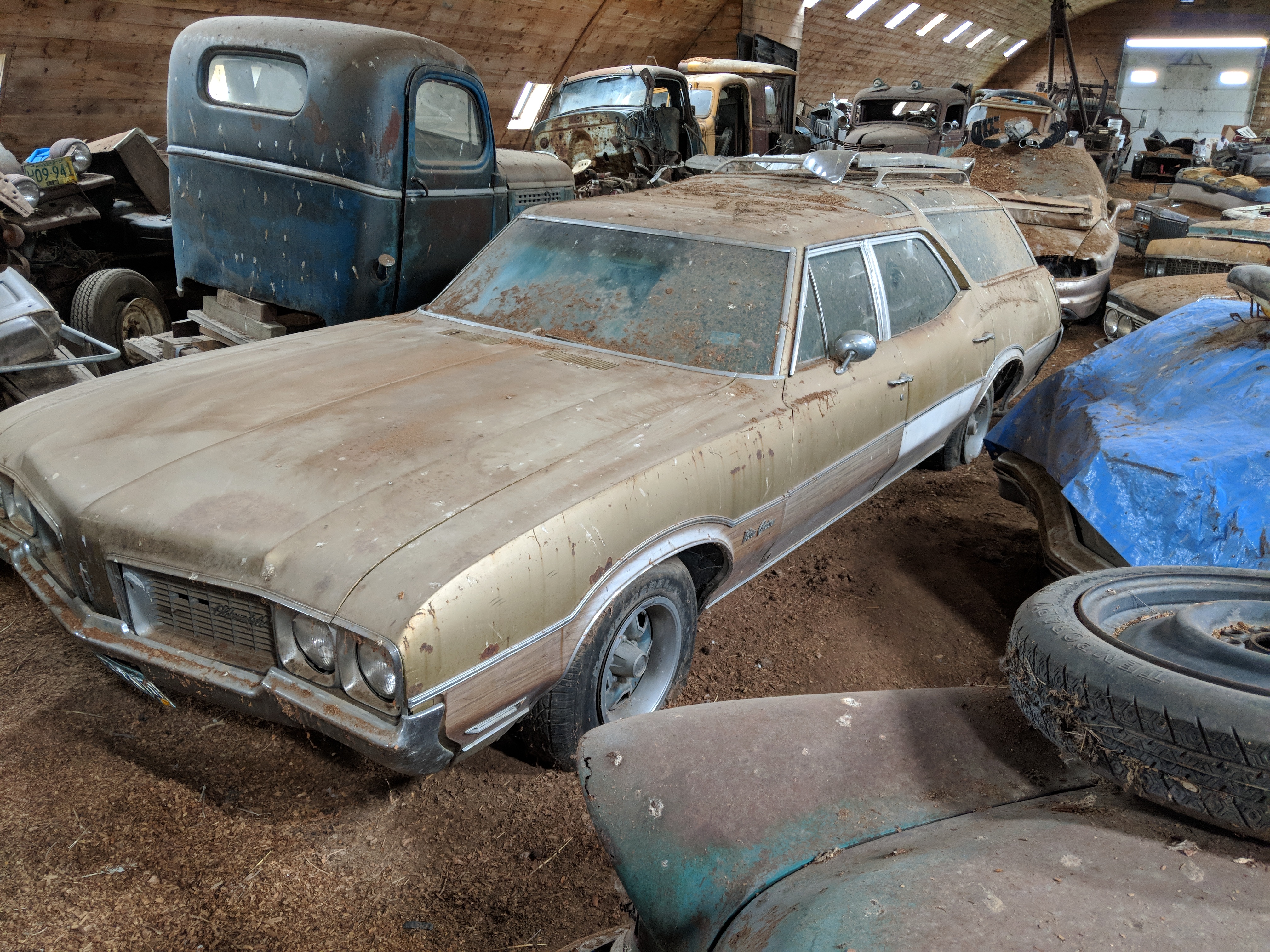 only a clown would go thru all the trouble to swap out frame mounts and all the other B/S to put a chevy motor in an olds. this needs a worked 455 in it and the chevy motor stuffed in Chevelle or a nova. looks to be a solid wagon. how much without the circus motor in it?