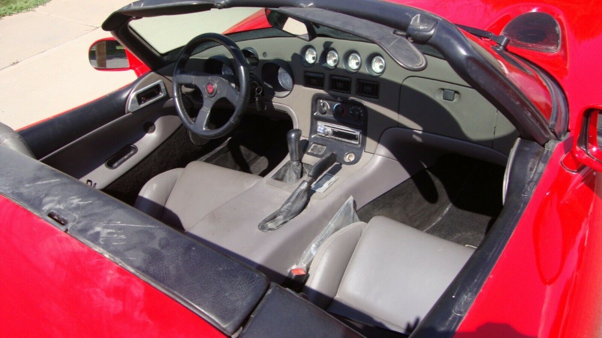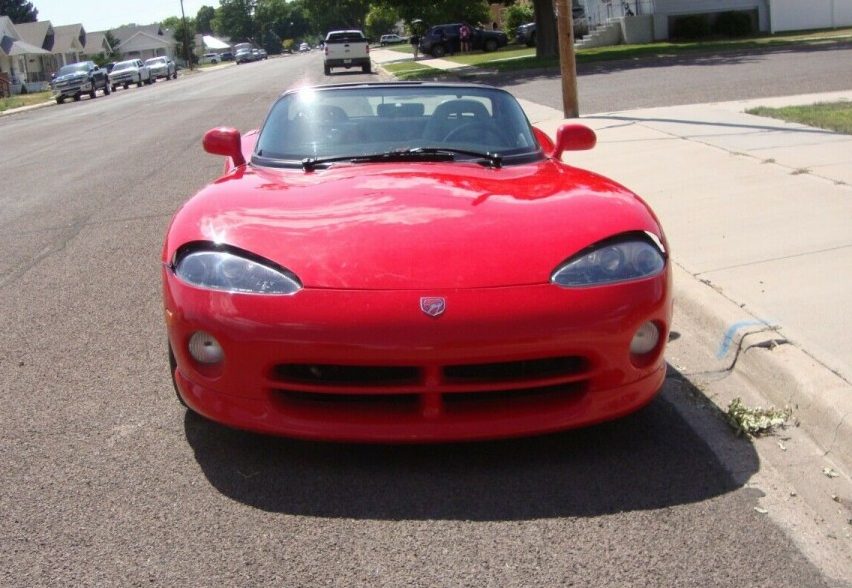 This Viper is available in Sidney, Nebraska with a reconstructed title. In 2002, the seller purchased the vehicle from its previous owner, who crashed it after installing a Roe Racing supercharger. Items such as the bumper, hood, and suspension underwent damage in the accident, and because the hood costs $11,000 by itself, this crash totaled the convertible at the time. However, these items received repair, and the seller claims that “no one will know that you are driving a wrecked beautiful RED DODGE VIPER unless you tell them.”