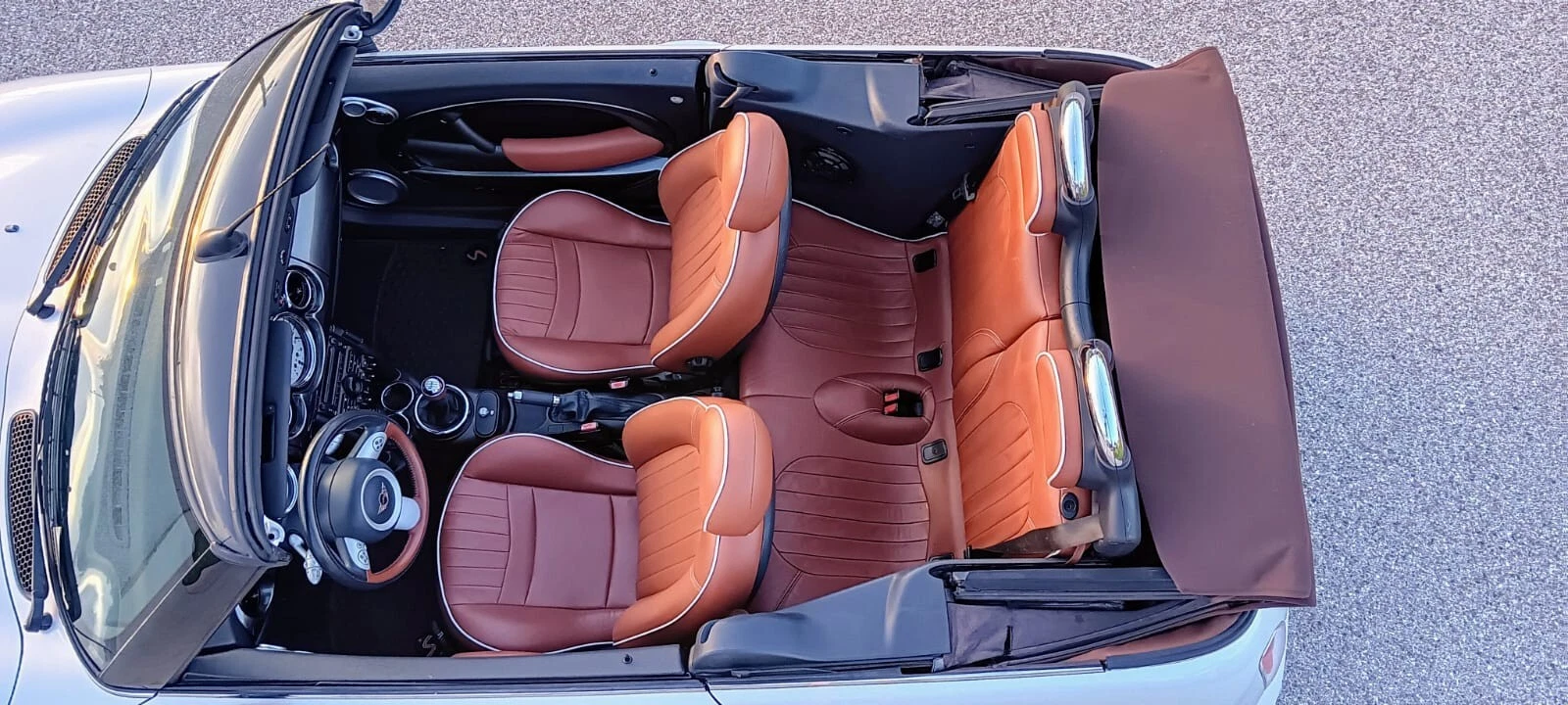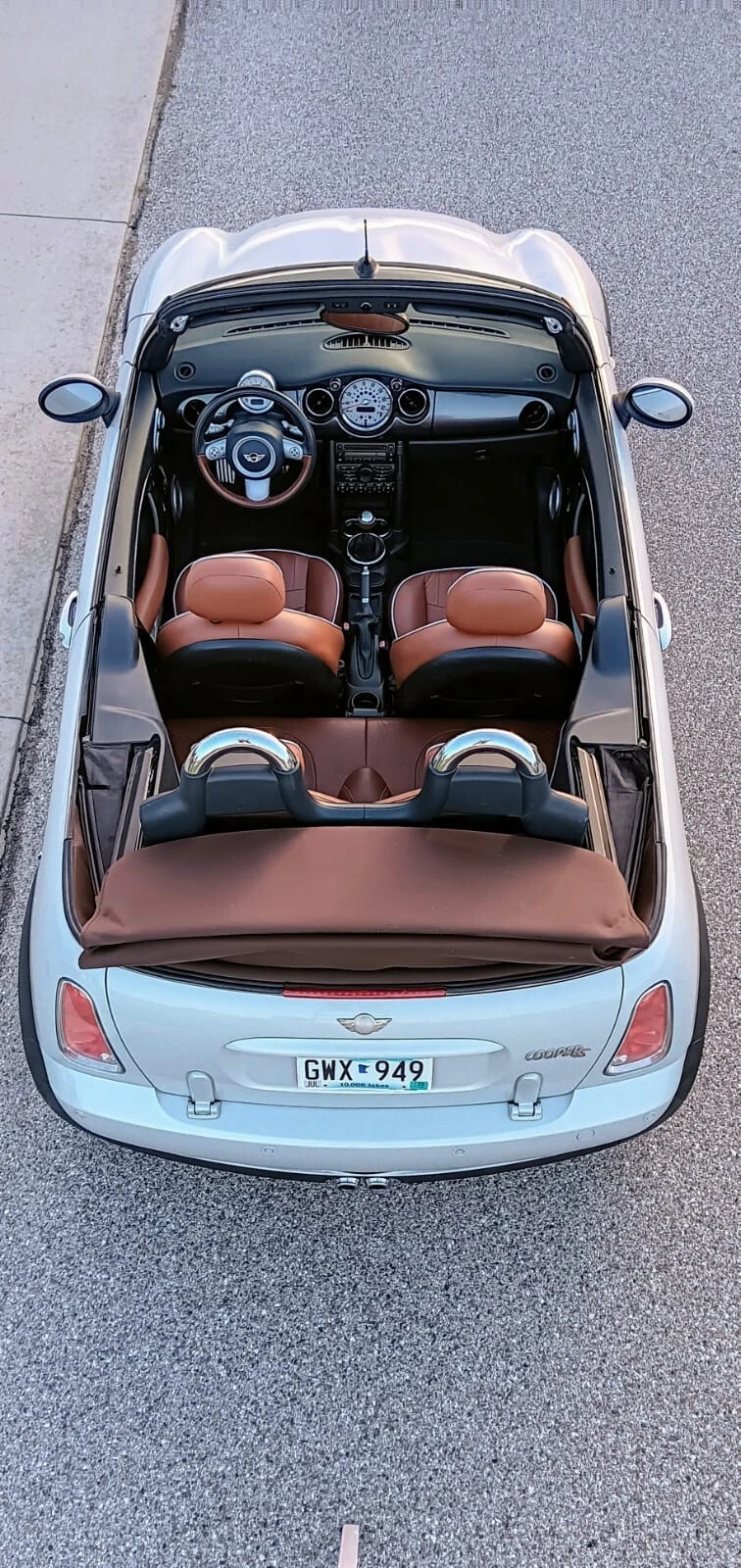 Since BMW acquired the Rover Group in 2000, they have offered a plethora of Mini models. Starting in 2005, a convertible was added to the lineup, and then in 2007 the $4,000 trim package known as the “Sidewalk “edition was made available for both the standard Cooper and the Cooper S. According to Car & Driver, Sidewalk components include, “unique, light-alloy wheels (16s base, 17s on Cooper Ss), English leather sport seats in a mandatory malt-brown color, and a steering wheel wrapped in ‘special Sidewalk sport leather’.” It seems like a huge expense for alloy wheels and a basketball hued upholstery, but that’s the way it rolled. The package was dropped after 2008 but then returned for the ’21 Model year. In this case, time has done no harm as the finish and trim are in excellent condition – this car has clearly been well cared for. The seller mentions that the folding top, however, has been replaced, but unfortunately, the exterior images are limited.