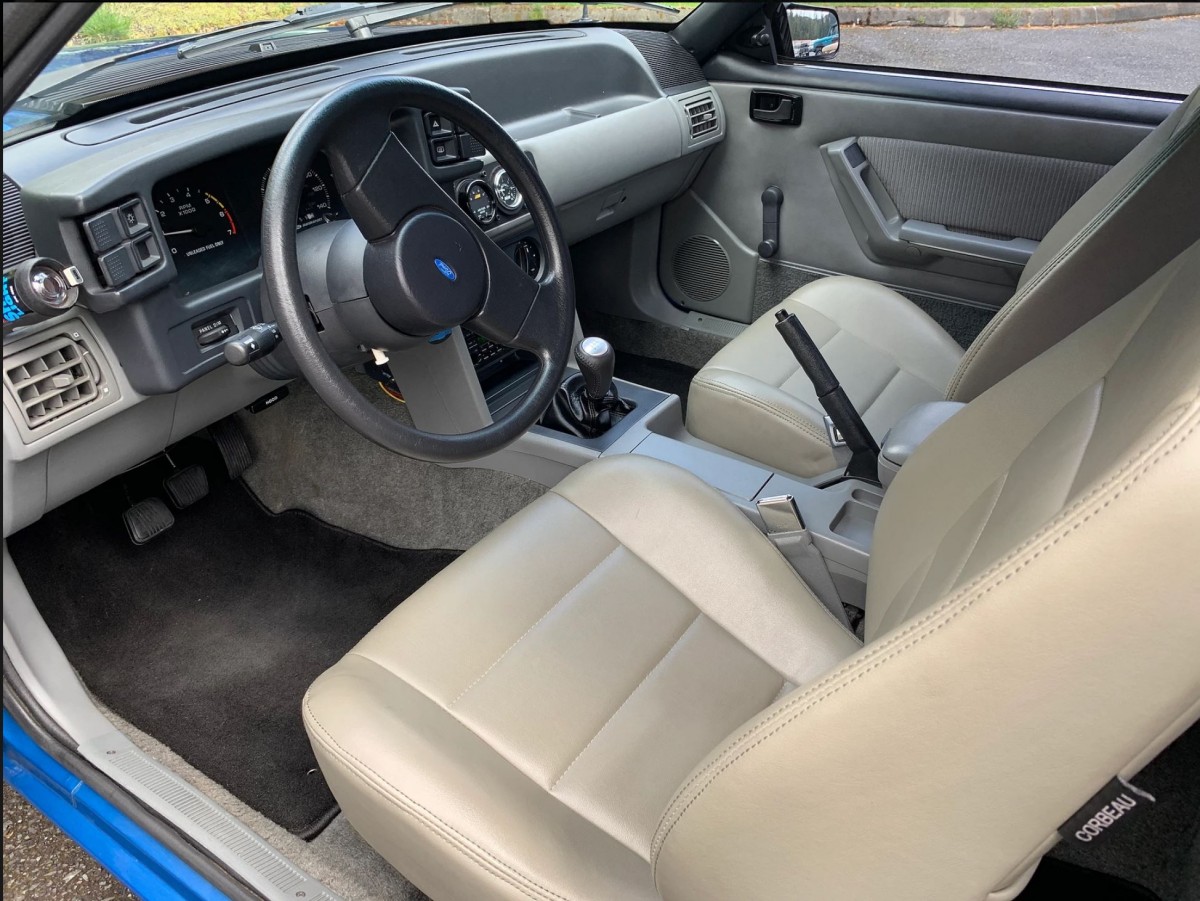 Occupying the engine bay is a 5-.0-liter V8 that is backed by a T-5 manual transmission. In its prime, this combination would have been producing 225hp, which was enough to fire the Mustang through the ¼ mile in 14.8 seconds. Those numbers would be enough to satisfy most owners, but it seems that a previous owner wanted more. He performed a multitude of upgrades to the engine and suspension to allow the vehicle to realize its full potential. The cylinder heads, intake, and exhaust have all been upgraded. This was in preparation for bolting on a Paxton supercharger. It isn’t clear what the power output is now, but I’d be willing to bet that it is much higher than 225hp. Don’t think that this has been a project where the sole purpose was to create a ground-bound missile in a straight line. The previous owner also installed a larger aluminum radiator and an oil cooler to prevent the small block from going the full Chernobyl. The suspension and brakes have received upgrades with components from Tokico, Ford Racing, Ford Motorsport, Maximum Motorsport, H&R, McLeod, ASP, and Eibach. That means that this classic should now stop and handle just as impressively as it should go in a straight line. The owner claims that the car has a genuine 20,000 miles on the clock, but there is no indication whether he holds verifying evidence. He says that the Mustang starts easily from cold, with none of the cantankerous attitude you might expect from a high-performance vehicle. However, he does say that while it might feel mild-mannered, its power delivery means that this is not a car for novices. It does run and drive well and is ready to be enjoyed by a lucky new owner.