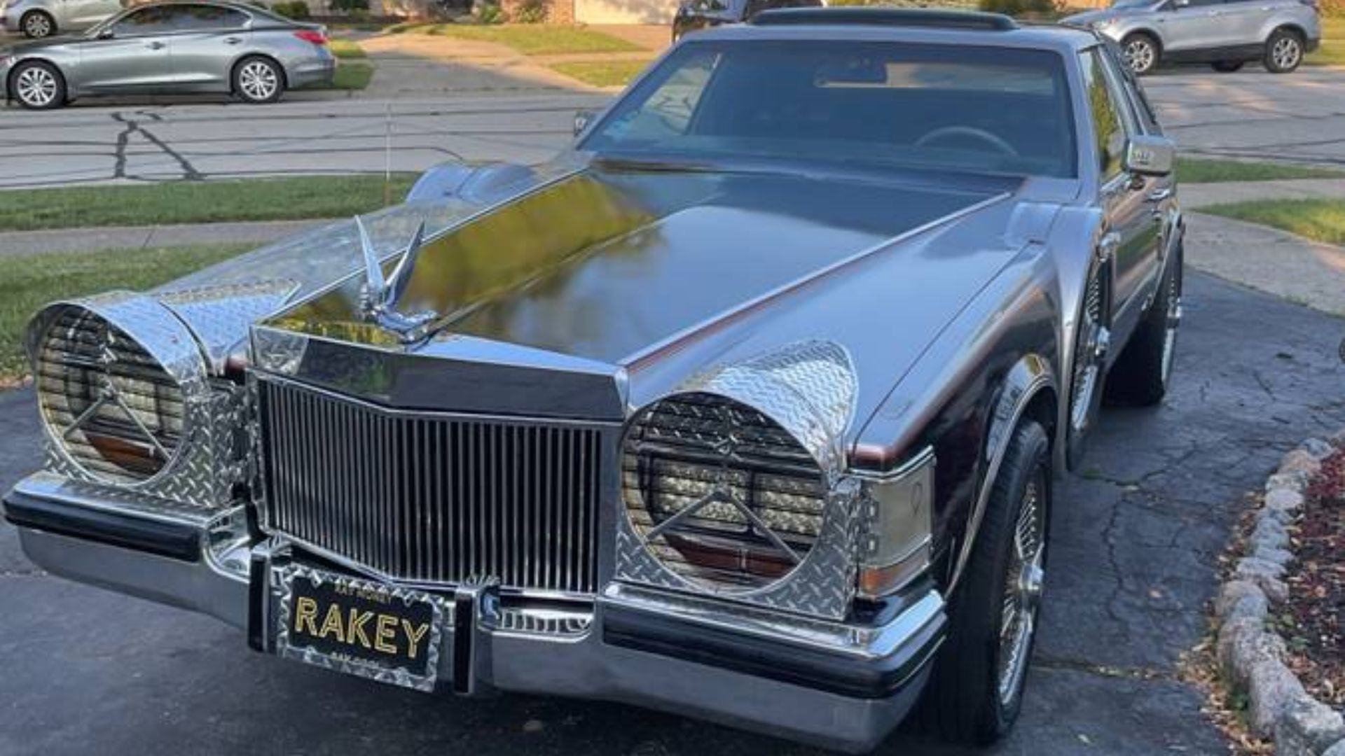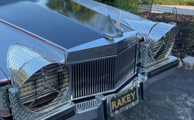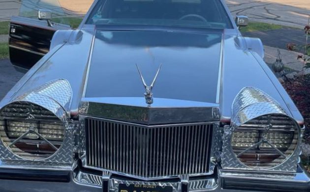 Finished in silver and black two-tone paint, this Seville wears all the excess of late disco-era custom luxury. Opera windows, padded vinyl top, and an extended front clip are paired with custom Superfly-style headlight covers. The 18-inch knockoff-style wheels reportedly cost $3,000 alone and give this coupe the kind of boulevard presence you won’t find in any showroom.