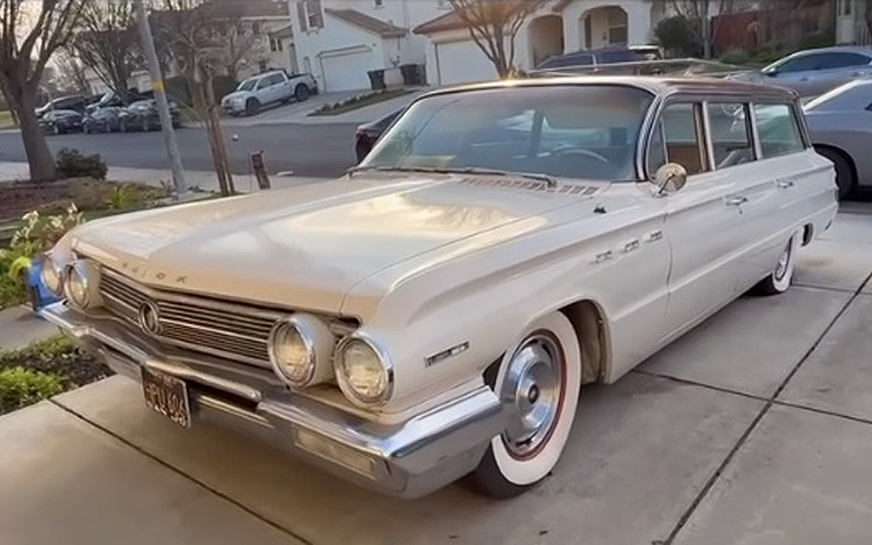In 1962, American families still needed a mode of transportation that could haul around kids and all kinds of cargo, and the most practical option was the station wagon. And by 1962, families had more station wagon options than ever with the recent introduction of compact and intermediate cars from the major auto manufacturers. Even the new-for-’62 Chevy II compact offered a station wagon in three trim levels to compete with their Falcon rival over at Ford. But full-size wagons were still popular. Although Chevy and Ford were the full-size wagon sales leaders, other lines, including the upscale Buick, also offered a long roof for the 1962 model year. Not many of these Invicta Estate Wagons were produced (13,748 total 6-and-8-passenger wagons) and here’s one that has survived but needs some TLC. It’s located in Tracy, California, and is listed for sale here on Facebook Marketplace for $27,000 or best offer. A special thanks to our pal, T.J., for sending this old long roof our way.