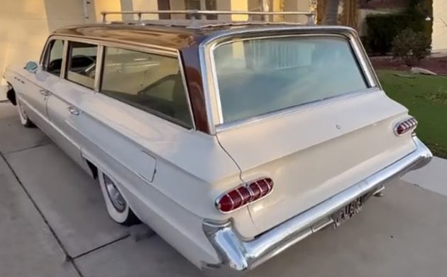 Under the hood rests the Buick’s 401-cubic-inch Super-Thrust Wildcat V8 that generated 325 horsepower when new. The seller says the car’s original engine has been rebuilt, runs good, and that the wagon has been driven a total of 94,278 miles. It’s mated to a Turbine Drive automatic transmission. The seller has posted a walk around video with the engine running and says the Invicta Wagon “needs some love,” but doesn’t go into details (I spot a brick behind the rear wheel, so maybe there are some brake issues). Buicks were positioned as a “doctor’s car” and were upscale and prestigious and just below Cadillac on GM’s “ladder of success” brand hierarchy. Not many of these Buick long roofs were made and still around after 64 years. Maybe somebody will listen to the doctor’s orders and become this Invicta Estate Wagon’s next owner. Oh, and by the way, a surfboard is included in the sale. Let’s go surfin’ now, everybody’s learnin’ how.