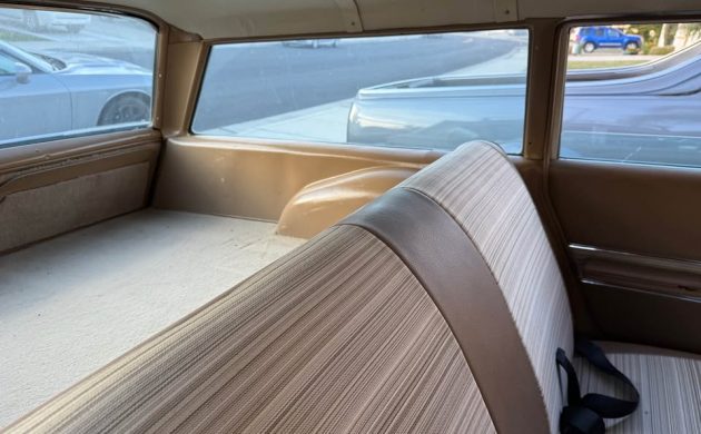 Photos, specs, and the car’s history are a bit sparse from the seller. Overall, it looks solid, and perhaps it has spent its life out in California. I’m not seeing any rust or body bumps and bruises, and the paint looks very presentable. Based on a ’62 Buick paint chart I found on eBay, I believe the color is Desert Sand with a Burgundy Poly top. The chrome, glass (including a power rear window), and lenses look good, but I’d switch the current wide whitewall tires with more period-correct ones. On the tailgate, Buick reused the smaller taillights from the previous ’61 model and if you’re wondering why the tailgate looks a bit plain, it’s because its missing the round tri-shield Buick logo and Buick name trim piece. I’m not sure if they’re included in the sale or not.
