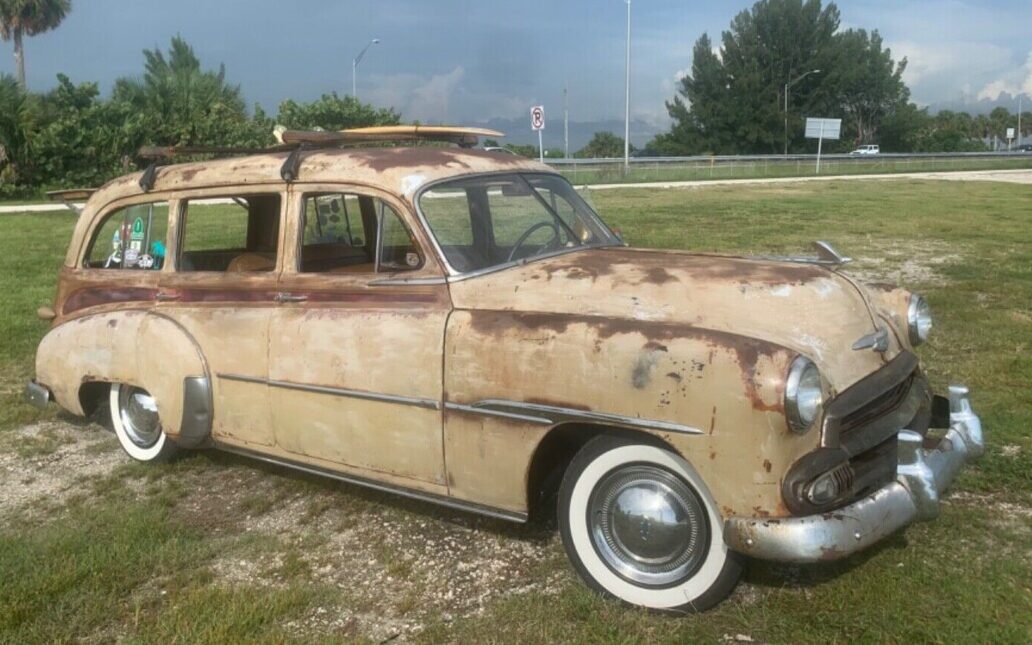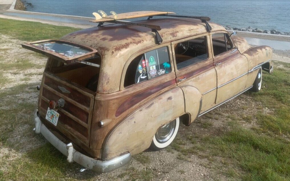 Often, the seller of an old and forlorn station wagon will suggest that it would make a “cool surf wagon” or some similar undertaking as its next station in life. In the case of this 1951 Chevrolet Styleline, it has already made the leap with its surfboard rack, beach/surf shop decals, and of course, the essential ingredient, lots of fade and burned-through surface rust, also known by that dreaded P-word, Patina. Regardless, this wagon is still intriguing as it has undergone other improvements so let’s see what’s here. It’s located in Palmetto, Florida and is available, here on eBay for a current bid of $9,000 with the reserve not yet met. T.J. gets a tip of the visor for this discovery!