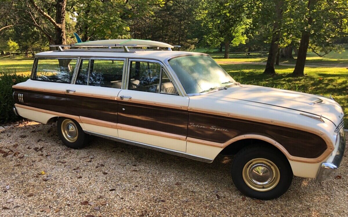 In 1960, Ford introduced its compact Falcon to supply a developing desire for smaller cars after the excesses of the 1950s. The Falcon was penned by Robert McNamara – yes, that McNamara, later named US Secretary of Defense – and it was Ford’s best-seller in its first year. By 1962, the Falcon family gained a new body style, the Squire wagon. Ford was already selling several full-sized wagons by then, but the market loved the handy little Falcon variant. (Incidentally, Ford used the word “Squire” any time it clad the sides of a car with wood paneling – faux or not. There are Country Squires, Pinto Squires, Fairlane Squires, Granada Squires…. you get the picture.) Here on eBay is a restored 1963 Ford Falcon Squire, bid to $8,800 with a buy-it-now price of $24,500. The reserve is not met. The wagon is located in Louisa, Virginia. The seller refers to it as his “rat rod” but other than a motor change from the original six-cylinder to a V8, the car looks fairly stock.