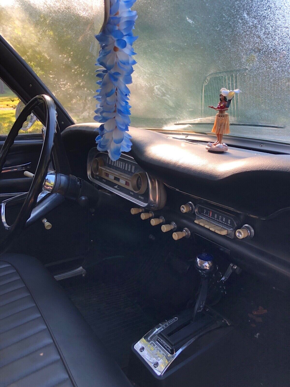 The interior is brand new and the original radio is present. White knurled switch knobs boost the vintage appearance. The car has a B&M shifter and a foot-shaped gas pedal. The lucky buyer also gets to keep the surfboard and the dash-mounted hula girl. I think these items qualify the car as a “rat rod” in the seller’s lexicon.