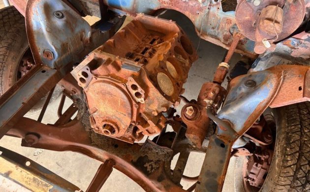 This interior shot demonstrates how sound the floors are, while also revealing that the interior is missing its seats. One photo in the listing shows a range of interior items, including trim pieces and a console. However, the dash appears complete, and sourcing another set of seats shouldn’t prove too challenging. A retrim will follow in the original Black vinyl if the buyer elects to pursue a faithful approach. With that work complete, the paint and trim combination would make this a striking vehicle.
