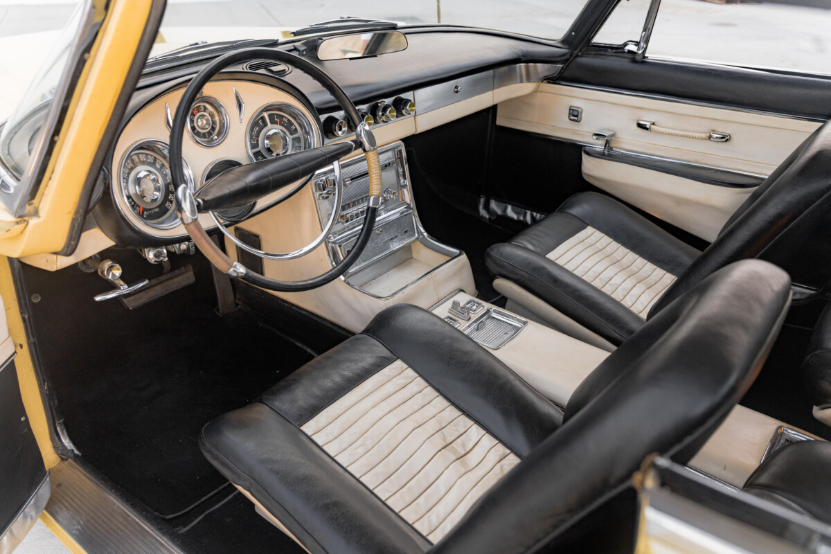 When I look at this Super Dart, I struggle to believe it was the product of the same team that produced the 1953 Chrysler Special by Ghia I recently featured. While the early car is subtle and restrained, this is loud, proud, and in-your-face. The enormous fins, a Virgil Exner hallmark, rise to a new level on this car, posing a serious threat to low-flying birdlife! I don’t think it is one of Exner’s more successful designs because the front and back of the car look like they were destined for different vehicles. Almost everything from the doors back features sharp angles and edges, but the front is more rounded and smooth. Just as the fins dominate the back, the front features an enormous oval grille and sweeping front fender lines. The Super Dart wears an exceptionally bright shade of Yellow, which is contrasted by Black below the large chrome moldings on the rear quarter panels and back bumper. There is also a Black vinyl top that is in good order. Considering its history, the overall presentation is not bad for a survivor-grade vehicle of this age. Scrutinizing the photos reveals a few flaws and defects in the paint and brightwork but no significant panel issues or rust. The glass is excellent, and overall first impressions are positive.
