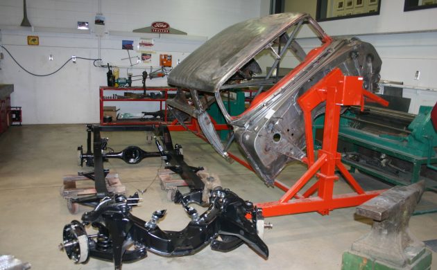 I enrolled at an auto restoration course (best week I ever spent at an auto shop) at the Reynolds Museum, way up north at a town called, Wetaskawin, AB. At that time they were restoring a Nomad, pretty basic, right down to the 235 six. I saw it before the teardown and it was rustier than a bed-wetter’s mattress springs. But it had some historicial significance for the region so they RESTORED it. Not much of that original body left but I guess that’s what a museum-quality restoration is comprised of. It seems to me that it’s red too.