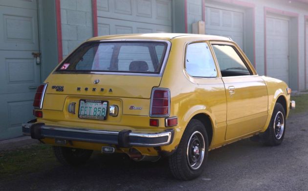 So, what happened to these early “historic” Honda Civics? The little car that established the Honda brand as an import juggernaut in the good old USA? Well, most were driven to death and although they had a reputation for quality and reliability, the same can’t be said for their rust-out issues. Here’s a first-generation ’77 Civic with the desirable 5-Speed gearbox package that isn’ perfect, but is being touted as being in “highly original unrestored condition.” The seller believes that it’s been a local Washington state car since new and still retains “most of its factory Caroline Yellow paint and dealer-installed pin-striping, other than front right fender.” The body is described as solid, photos show a clean trunk, and it has some shown rust in the lower valance corners and some surface rust and bubbling spots.
