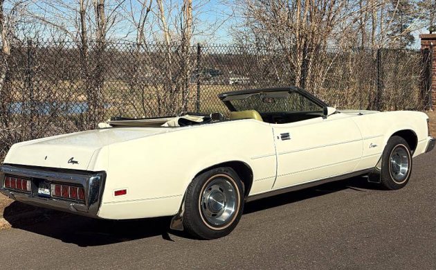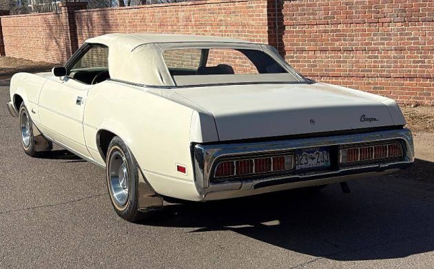 Cougar, in ’73, offered two body styles, coupe or convertible, and two trim levels, standard, such as our subject car, and XR-7. Yes, it had grown up quite a bit from its original 1967 incarnation, but still sold well, knocking out 61K units in ’73. The convertible proved not to be as popular, with only 4,400 seeing the light of day that year. Largely unchanged from the Gen II introduction in ’71, the most obvious difference for ’73 was the addition of the federally mandated five MPH front rammer. That noted, I’d suggest that Mercury engineers and stylists did a pretty good job of affixing the sizeable protuberance to the nose of their pony car. This one’s a looker – all of it. The finish is well preserved, and the folding top shows as new. The seller claims “always garaged,” and that’s easy to believe. Note the “Styled Steel” wheels; other than the center cap, they’re reminiscent of Chevrolet’s ubiquitous “Rally Wheel”.