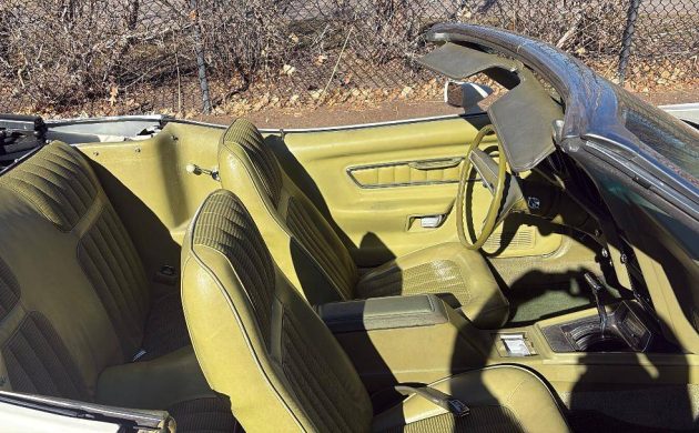 I’ll admit that I wasn’t a fan of early seventies kitchen appliance hues – and like them even less as a car interior shade. Sure, the innards of this 81 K-mile Cougar look fine, certainly not too much time in top-down sun mode, but avocado green? Well, OK, I guess, it was a sign of the times – and it is certainly a departure from today’s boring abyss commonly found in most new cars. This ragtop even has a top boot – I wonder how hard it would be to find another in avocado? As is often the case with convertibles from this era, there is no A/C.