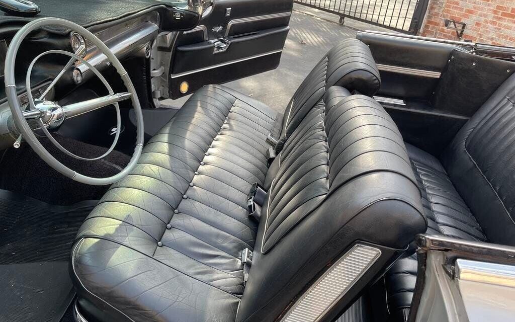 The ad says the interior is all original and it is beautiful. I’m sure the black leather gets very hot in the Texas sun, but it is a great look with the silver exterior. Even back in the 1950s, Cadillac offered several power options including windows and seats.