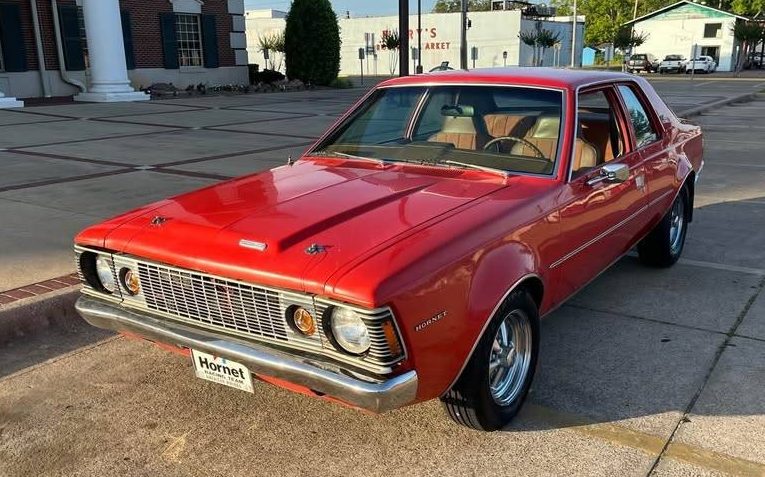 Nice looking car overall, but six cylinder with automatic, no AC, standard back-breaking bench seat with no recliners, no underhood photos, no chassis photos, hardly any photos. Hopefully has power steering? (I’m more partial to the later front-end styling but that may be because that’s what the Hornets I’ve owned had.)