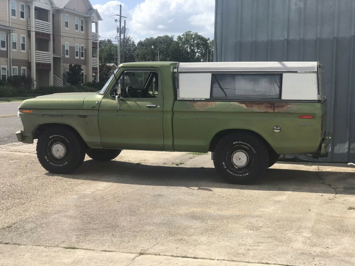 I learned how to drive in my dad’s green 1973 Ford F100 pickup. Looked a lot like this one, but his had a nice topper and a bigger motor, I want to say a 390 V8. That sucker could kick some serious gravel. Seeing this one brings back some great memories.