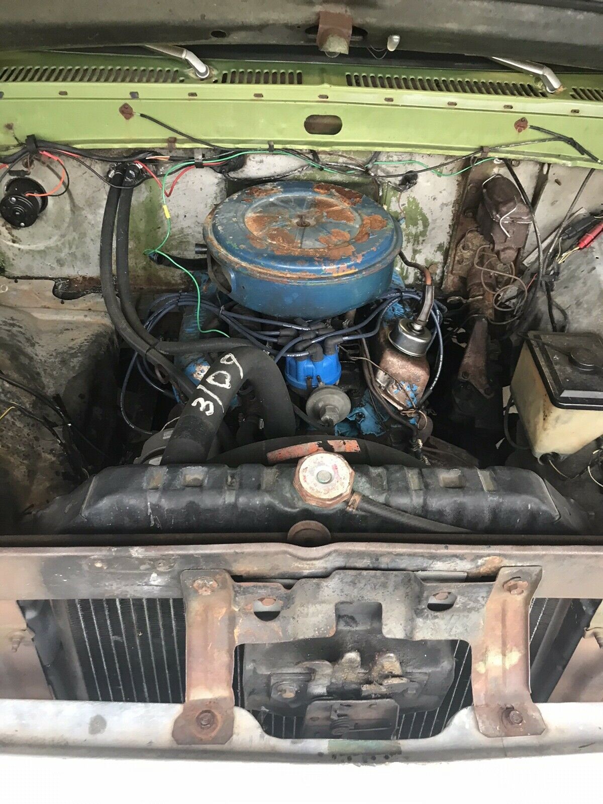Shift leaver seems woefully low to the floor and I bet 4th gear grazes the seat if you’re short like me. Steering wheel seems out of place, like a Buick Gran Sport from the same era. Good to know that radiator hose hasn’t blown in 11 years….could it be marked any more conspicuously? Nice shorty truck for a good basic price if it doesn’t go much higher.