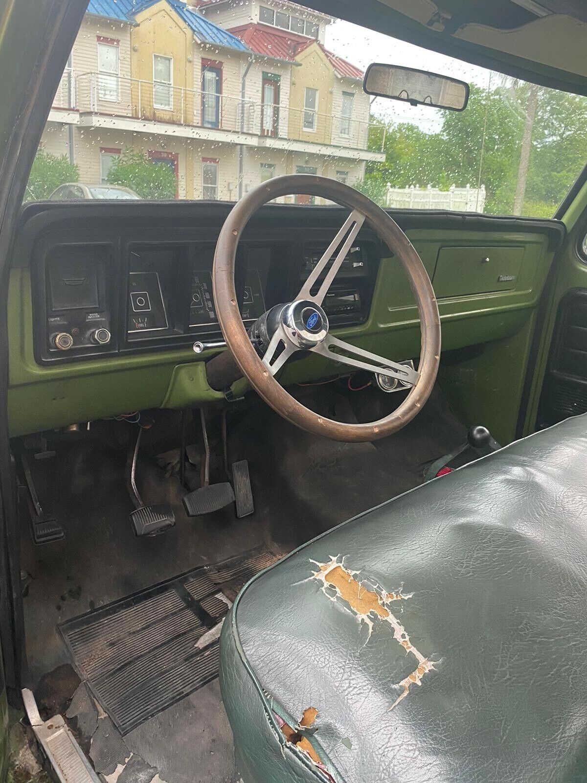 The interior is in fair shape, with a mostly solid bench seat with a few holes poking through. The dash paint looks clean and matches the rest of the car, but the radio does appear to be a later aftermarket example. The manual transmission is a surprise and makes this Ford seem like loads more fun to rip around town in, and the three-spoke steering wheel is a nice touch – and probably makes the truckloads easier to steer around town. Overall, this F100 seems to reside comfortably in the sweet spot between project-grade example and open road ready. It’s a driver you can enjoy using.