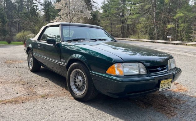 Among the more unusual Fox-body Mustangs produced, the 1990 Ford Mustang 7-Up Edition stands out for both its origin story and limited production numbers. This example, listed here on Craigslist in Garfield, NJ, is described as a documented 34,000-mile survivor and one of just 1,360 factory 5-speed convertibles built for this special edition. According to the seller, the car spent decades in California under the care of its original owner, who purchased it new at age 50 and only parted with it at 80 after 32 years of ownership. Thanks for the tip Mitchell G.!