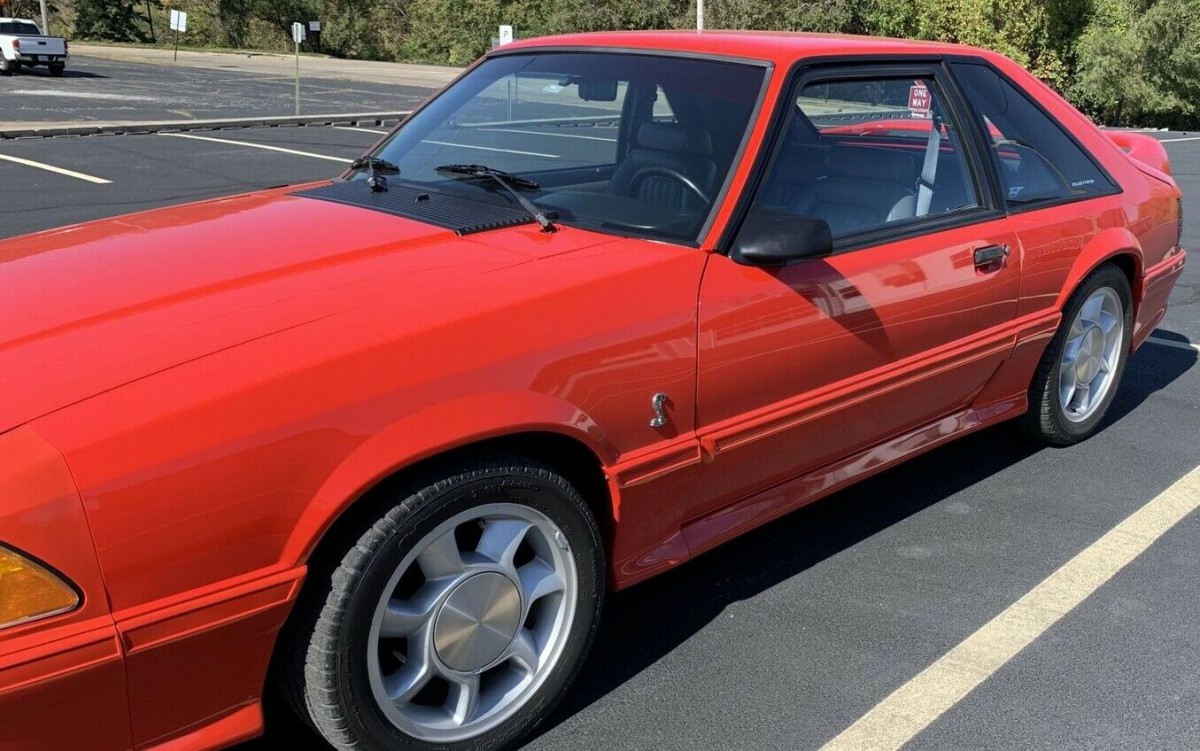 The Vibrant Red paint shows no obvious flaws or sun fading, and the polished Cobra-specific wheels still look sharp all these years later. The Fox body Cobra was offered in just three colors, and it seems like the last round we’ve featured here have overwhelmingly been red. While Mustangs of this era are often prone to customizing and modifications, the Cobra-specific bodywork remains in place and the suspension doesn’t appear to have been altered, either – though, it does look quite good when the fenders are an inch closer to the top of the tires. The seller confirms the Cobra has no paintwork and is a “9 out of 10” condition-wise.