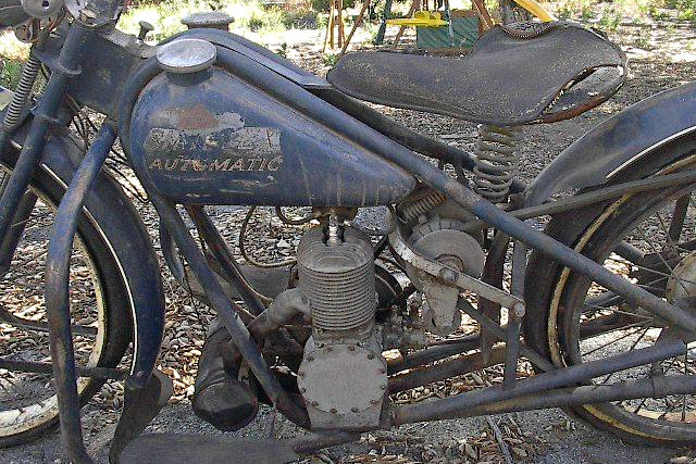 This Servi-Cycle is listed as both a 1952 and a 1954. From 53 onward these bikes were equipped with a variable speed automatic making the 7.9 cubic inch two stroke much more useful with its peak 4 horsepower rating. Also the Servi-cycle was claimed to be capable of reaching 100 mpg, but I am sure some have seen higher. Mostly complete, there are is a missing cover off of the engine, and the kick starter is missing. Fortunately the engine does turn over, so with a little luck and wrenching, hopefully this two stroke will be buzzing again.