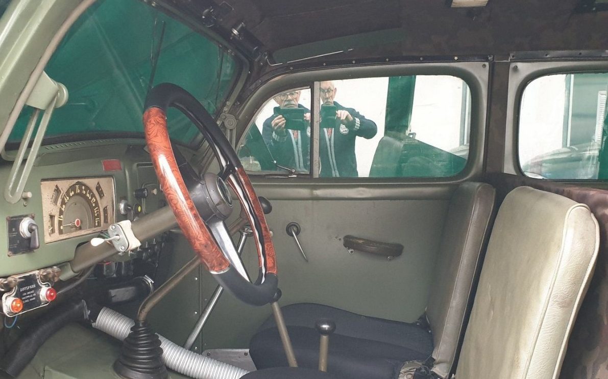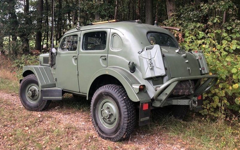 The listing for this Sugga is not too informative, it states that this is one of approximately 200 still in use, and it has been “completely mech. outdated” which I think means completely mechanically updated; something probably got lost in translation. The listing further states that the seller has 15’000 in receipts (about $16,600), ostensibly for what was probably, a total refurbishment. It looks good, certainly like it means business, though I’m not sure that I would know otherwise. The olive drab finish appears to have been recently applied and there is nothing that seems out of place or begging for an answer. It does have a pair of jerry-cans attached to its hind side quarters but that’s it for features. No, there are no obvious guns/cannons attached but I suppose one could investigate that possibility if they were so inclined…