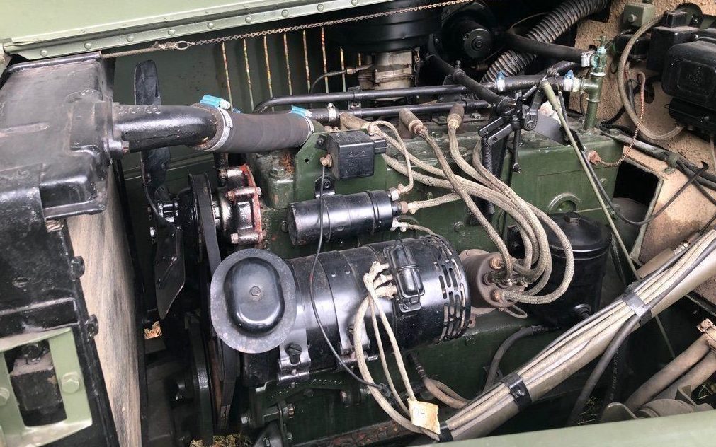 The interior is very utilitarian in nature but that’s pretty much what one would expect for such a vehicle. It appears to have been restored recently though I wonder if the camouflage headliner is correct. I particularly like the roof hatch, I can think of numerous instances where that would come in handy. Note the steering wheel – it seems a bit tarted up in this instance.