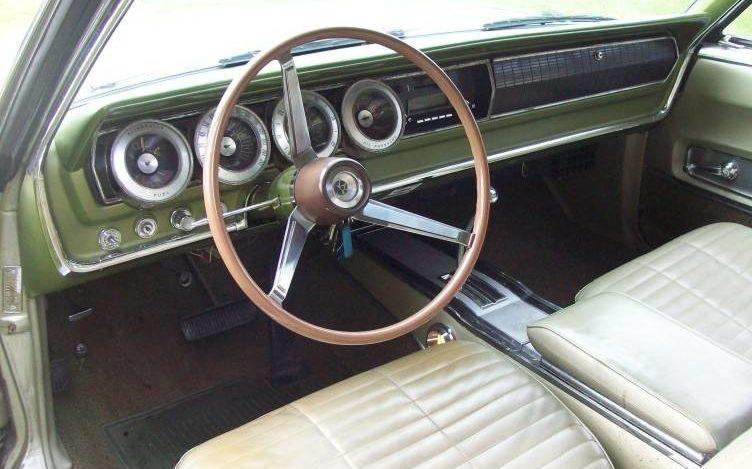 While the metal stamping and right half of the dash resembles my ’66 Coronet, the Charger gains sportier circular gauges and a fancy center console.