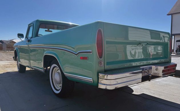 Really nice overall Sweptline here. I always liked that design on the rear bed fenders. I know I mentioned on a different one that I believe SG wrote up a while back that the design lends itself nicely to a two tone paint sceme. This ones a great color. And I appreciate Scotty posting the link to the Dodge truck brochure. If you look, many of the half ton models had twin stripe white walls on them. I also liked the baby moons on the yellow crew cab. The Slant Six and Torque Flite won’t win any drag races, but it’ll get you home reliably from the Home Depot or Cars and Coffee. If it were me, I’d prefer a 3 speed on the column or even a 4 speed manual transmission. I’d definitely try to source the missing trim pieces too, but this one is really nice as is. We’ll have to let Scotty off the hook for not creating a crew cab version, seeing as how Dodge beat him to it. This is a very nice find, tip of the hat to Mike F for submitting it. I enjoyed your write up Scotty, thank you.