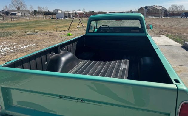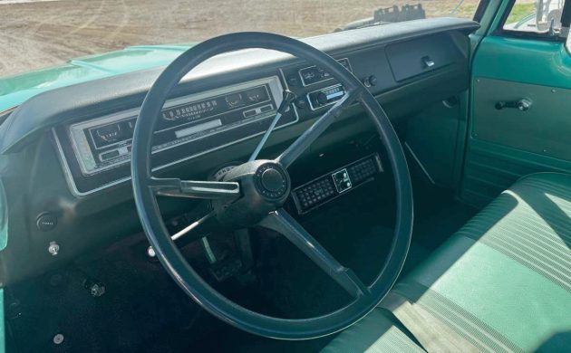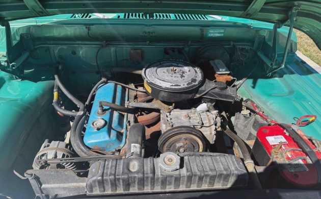 The interior looks great, and this truck has dealer-installed air-conditioning. I’m assuming it’s working, but there’s no mention of that. A couple of the door strikers have been painted, but maybe they were that way from the factory, too? Otherwise, they sure taped off around the data plates perfectly, nice job! Power steering, power brakes, AC, and an optional TorqueFlite automatic give this truck gobs of luxury, or at least a very easy drive for the next owner. I wish I were the next owner. I love this one, missing trim or not. There are no vinyl side door pockets, which would have been on an Adventurer Sport, and no woodgrain instrument cluster. I’m confused; maybe one of you will know exactly what trim level this truck is, not that it matters in the grand scheme of things.