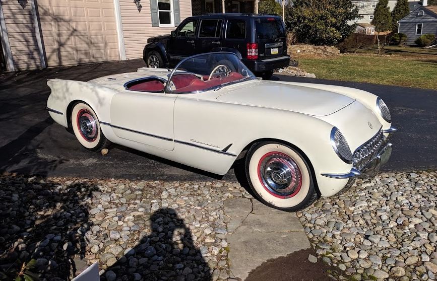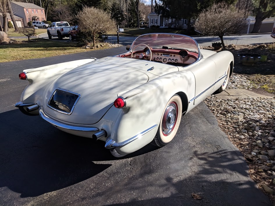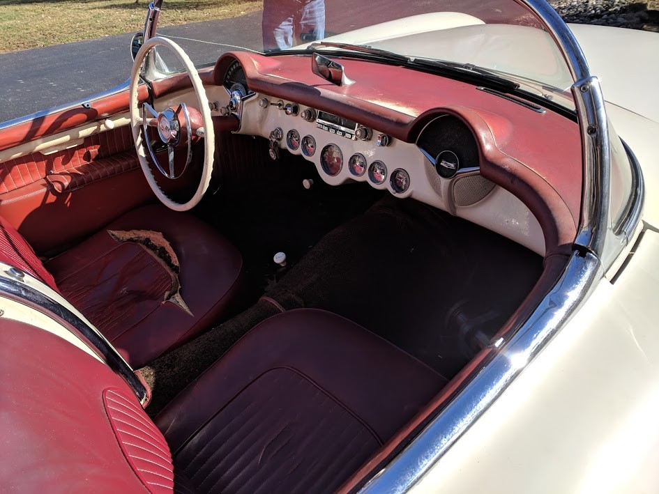 The owner of the Corvette says that the engine is original, but doesn’t tell us whether the rest of the drive-train is. The engine is the 235ci “Blue Flame” straight-six, which is backed by a 2-speed Powerglide transmission. Those people who were hoping for a V8 engine in a Corvette were going to have to wait until the 1955 model year because this was the only configuration available when the car was new. The owner says that the engine runs, but doesn’t mention how the car drives. It appears that the owner does have the original air cleaners for the car, along with some other original parts.