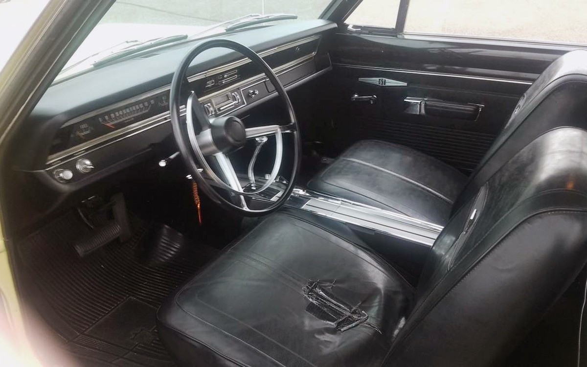 The fourth and last generation of the Dodge Dart was made between 1966 and 1976 for the 1967 through 1976 model years. They changed quite a bit during that period with the early cars – 1967 to 1969 – having a really great-looking tough, square design. Hey, it was cool enough for Joe Mannix to drive and that’s good enough for me. Joe’s was a GTS convertible that was slightly modified and this is a GT hardtop, but this is still a great-looking car. The rips on the driver’s seat seem to be the biggest issue with the interior which looks great otherwise. Bonus: the seller has new seat foam and a new seat cover! Being a GT, this one has a floor shifter, in this case, an automatic. Almost all GTs had a floor shifter, either a 3-speed TorqueFlite or a 4-speed Hurst shifter.
