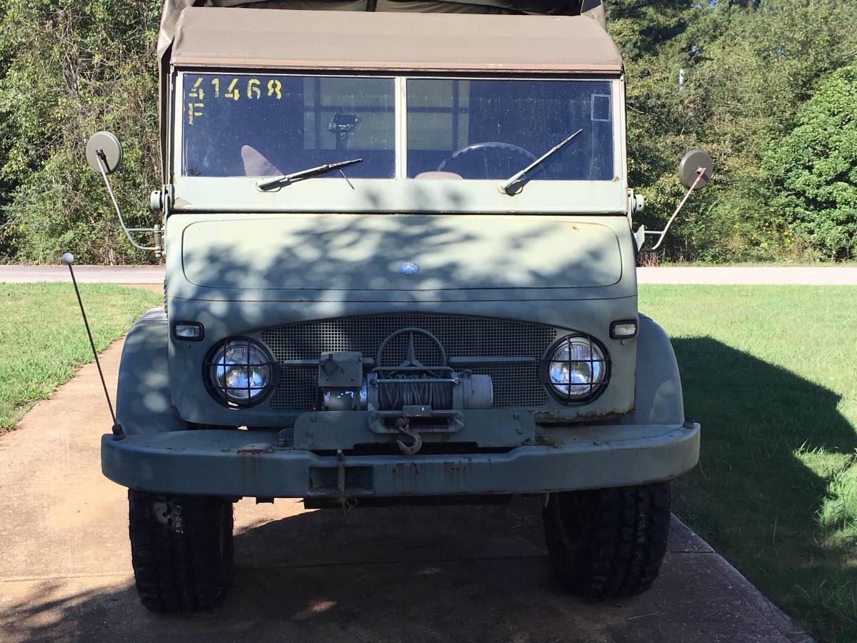 My 404 was a 68 and in virtually brand new perfect condition. It has a Mercedes 6 cylinder (gasoline) engine, carburated, the truck has 2 fuel tanks one a primary and the second is your reserve. The engine makes 88 hp and the trans is a 5 speed but they have a special LOW that is out if the normal shift pattern, 1st gear isn’t low enough to climb a serious ditch and low low is definitely low enough but it will take 10 minutes to get to the top. Road cruising speed is between 35 and 40 mph. Something not seen very often in the 404 is the winch, be aware that little winch by itself is worth almost 5k$!! Parts are pretty available for this truck, oh and it was the only gasoline powered Unimog ever built. When I sold my 404 it took me only about 2 weeks to get another Unimog, they are the most addicting truck I have ever owned!