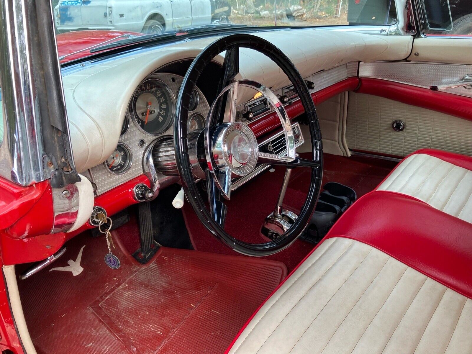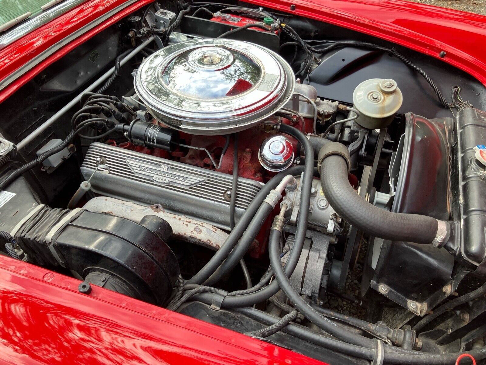 The Thunderbird’s interior is as tidy as the rest of the vehicle, but close inspection reveals more changes. The most profound of these involves the trim combination, which isn’t original. It is a hybrid mix of Code XH Flame Red but with White seat inserts and door trims, as you might find in cars ordered with some two-tone combinations. This mix wasn’t an option in 1957, but Ford offered something close in 1956. Other changes include a retro-style radio and ice-cold vintage air conditioning. These features supplement the power windows and desirable four-way power seat. The photos indicate no interior issues or shortcomings, and the winning bidder can sit with their head held high behind the wheel of this classic.