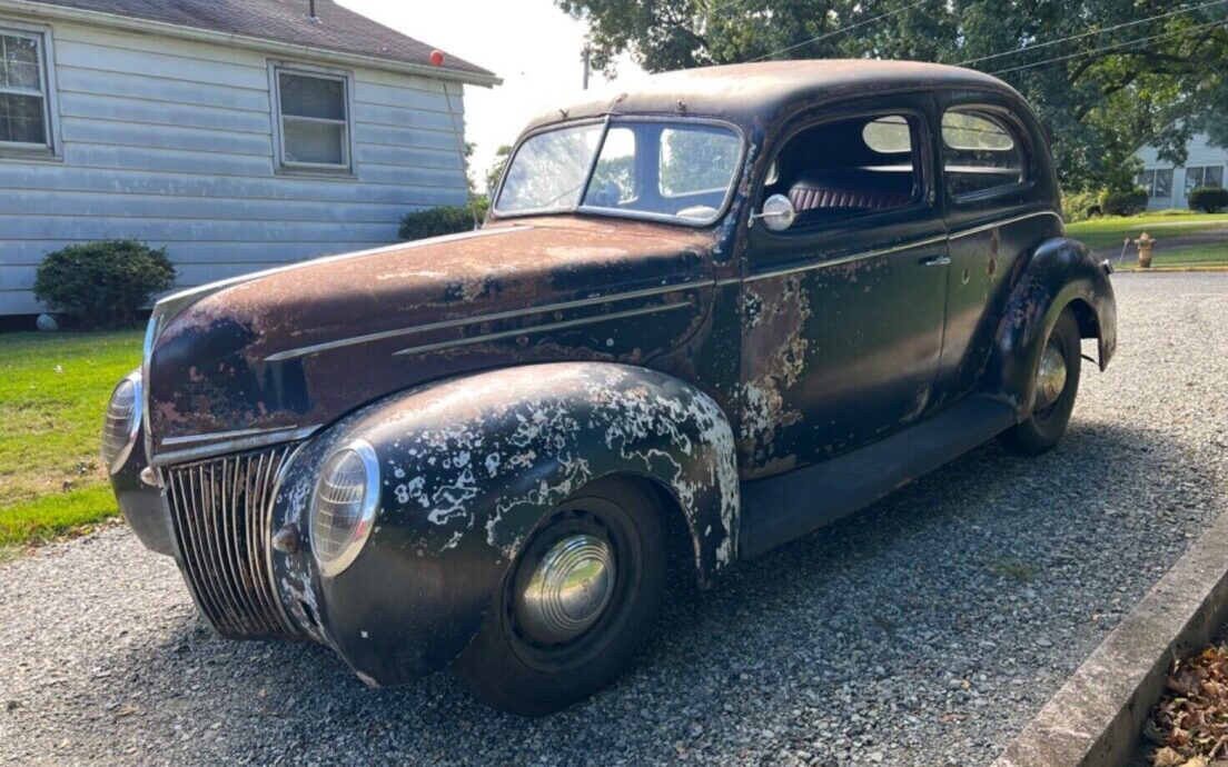 If you’re looking for patina, this ’39 has it in spades. The black paint is worn down to primer in some places and to surface rust in others. The bumpers are missing, but the body looks quite straight. A few undercarriage photos would have confirmed that all is well in that department.