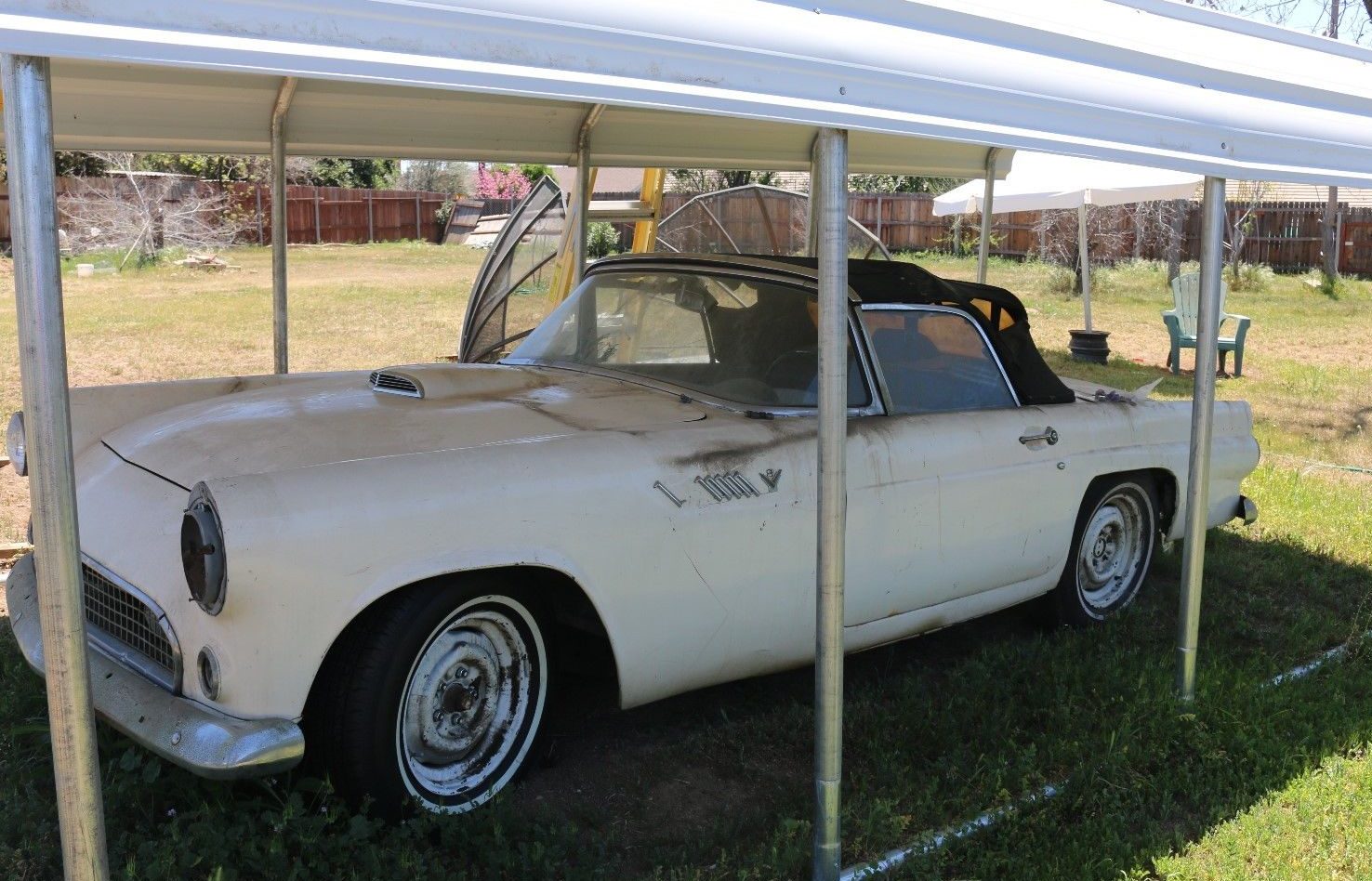 With a wave of American GI’s back from the war with fond memories of European cars like the MG TC Roadster and the Jaguar XK120 – American car manufacturers responded with sporty alternatives. The Chevy Corvette, introduced at the 1953 New York Auto Show, is probably the most famous sports cars put forward early. Fords response was the Thunderbird, which came two years after the Corvette in 1955 – the same year as the nice project survivor found here on eBay.