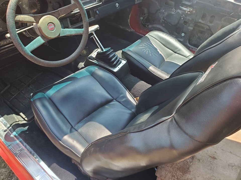 The interior is rough and the doors are missing door panels which can be obtained from an aftermarket supplier. The console is also missing and a B&M shifter is mounted on the floor. The seats appear to have been recovered and include Z28 logos on the headrest. The car appears to have tilt steering but there are only 5 pictures in the listing so some additional inquiry is going to be needed to learn more about the car. The car does have T-tops which look to be factory.