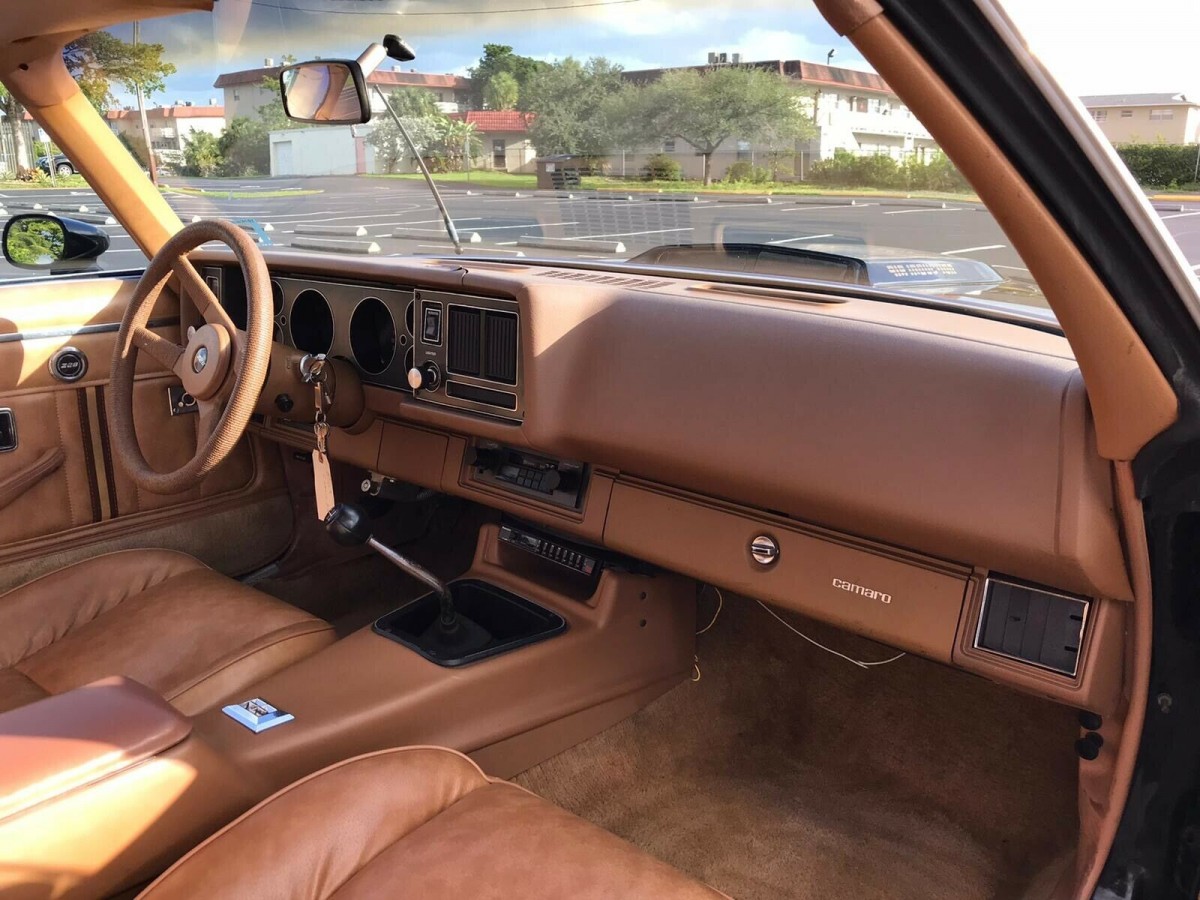 This survivor is said to be equipped with its original 350 cubic inch V8 engine. The LM1 5.7 liter engine was rated at 190 horsepower in 1980 and included a new air induction scoop. This was the last year for the 2nd generation Camaro that could be ordered with a 350 cubic inch V8 engine and 4 speed transmission. In 1981, a buyer could only order the 305 cubic inch V8 engine with a 4 speed. The odometer indicates mileage of approximately 85,000.