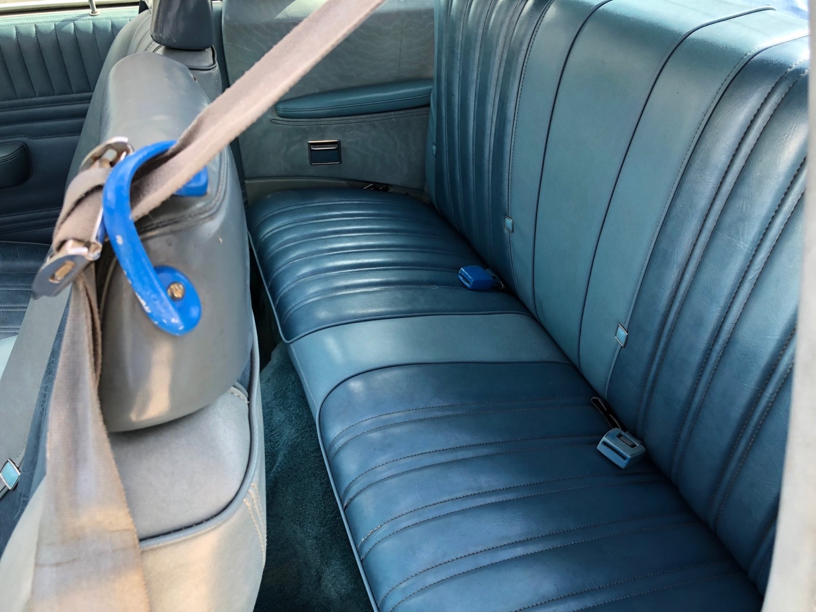 The interior looks great and this car has a 4-speed – yes! The 60/40 split bench in front looks perfect as does the back seat. The trunk looks a little dirty and the paint appears to be peeling a bit in that area, maybe that’s why the body looks like a matte finish? There is no mention of bodywork or paint in the listing.