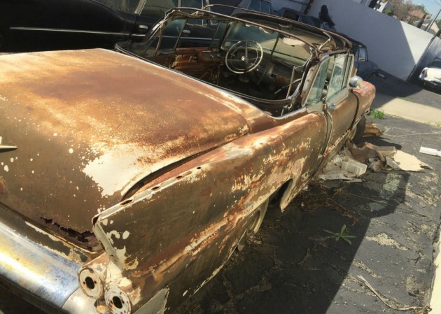 It may be hard to tell from the photo, but this was once a beautiful 1956 Cadillac Eldorado Biarritz. It was the Caddy to have back in the mid-fifties with its convertible top and 25 extra horsepower over the… more»