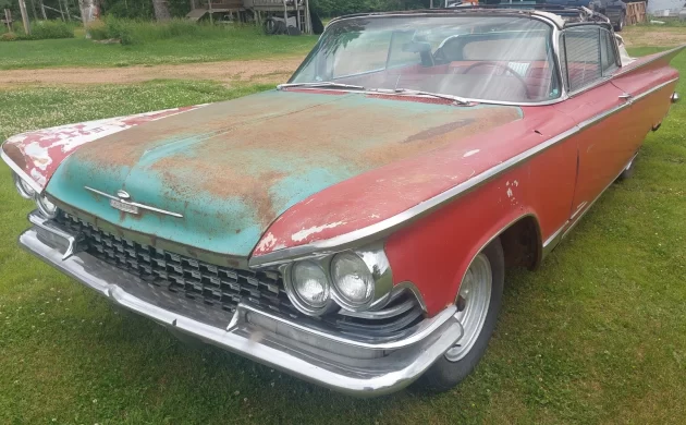 Buick’s flagship Electra joined GM’s fintastic ’59s, flaunting bold styling front-to-back. This 1959 Buick Electra 225 convertible in Marathon, Wisconsin sports a non-running but reportedly rebuilt 401 V8. It needs some metal repairs, but despite the Badger State address,… more»